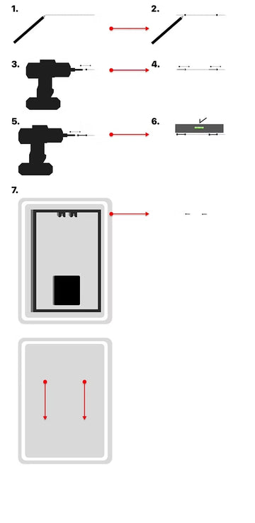 - Vidalaraın takılacağı yeri bir kalem yardımıyla işaretleyin aralarındaki mesafeyi bulmak için ayna üstündeki vida deliklerinin mesafesini ölçün.