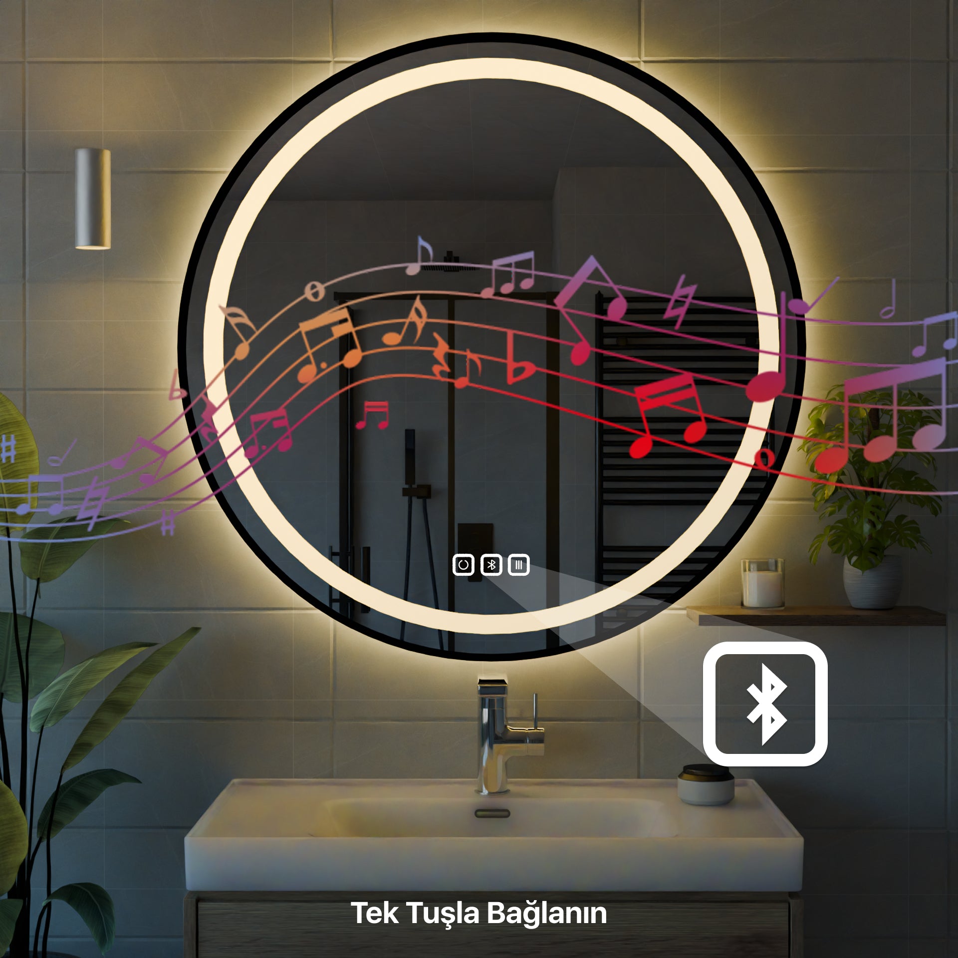Bluetooth hoparlör sistemi, aynanın üzerindeki Bluetooth simgesi bulunan dokunmatik tuş ile aktif hale getirilir. Açıldıktan sonra telefonunuzdan Bluetooth bağlantısını gerçekleştirerek, müziklerinizi ve sesli içeriklerinizi aynamızın hoparlörlerinden daha yüksek ve kaliteli bir şekilde dinleyebilirsiniz.