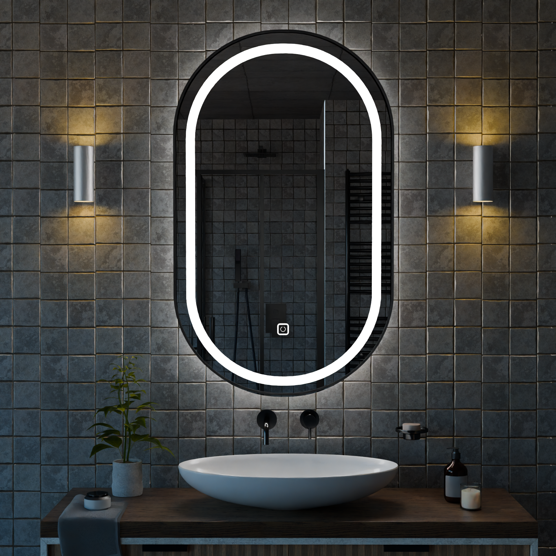 Dokunmatik Tuşlu ve LED Işıklı Oval Banyo Aynası - Beyaz Işık
