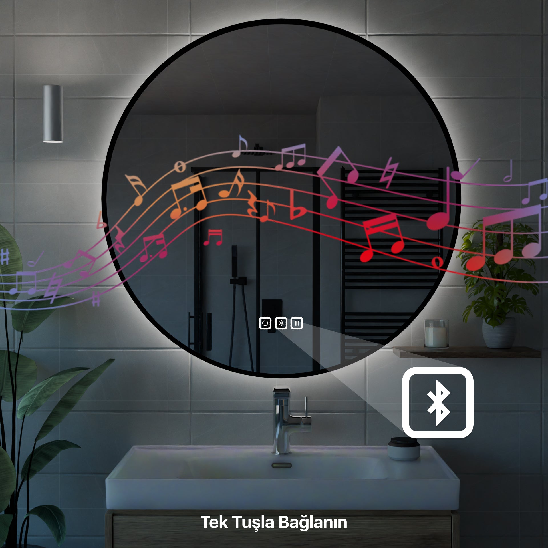 Bluetooth hoparlör sistemi, aynanın üzerindeki Bluetooth simgesi bulunan dokunmatik tuş ile aktif hale getirilir. Açıldıktan sonra telefonunuzdan Bluetooth bağlantısını gerçekleştirerek, müziklerinizi ve sesli içeriklerinizi aynamızın hoparlörlerinden daha yüksek ve kaliteli bir şekilde dinleyebilirsiniz.
