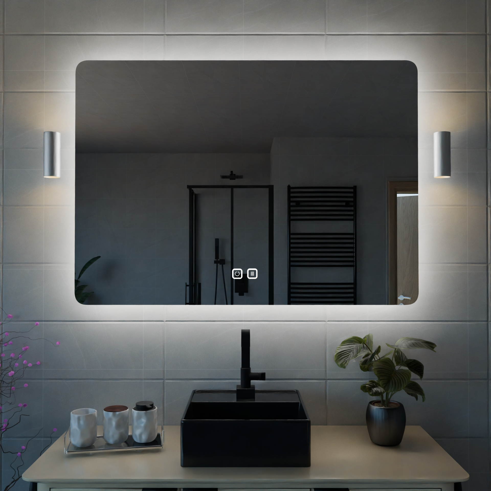 Kumlamasız Buğu Çözücülü, Dokunmatik Tuşlu, LED Işıklı Dikdörtgen Banyo Aynası - Beyaz Işık
