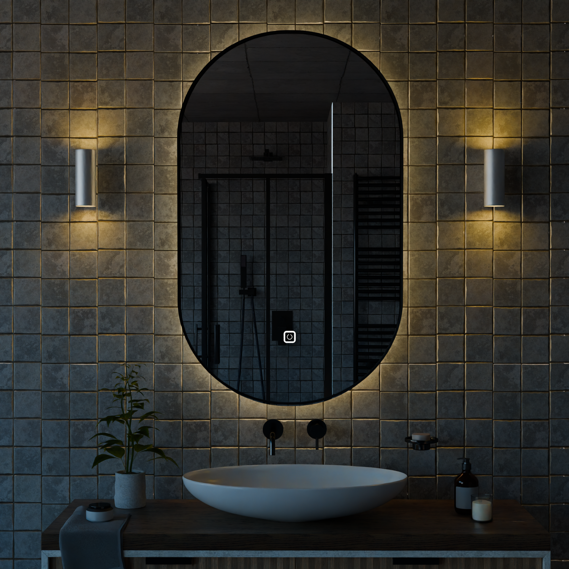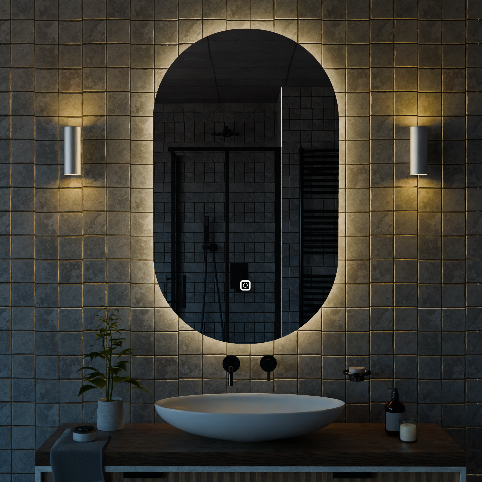 Kumlamasız Dokunmatik Tuşlu ve LED Işıklı Oval Banyo Aynası - Gün Işığı